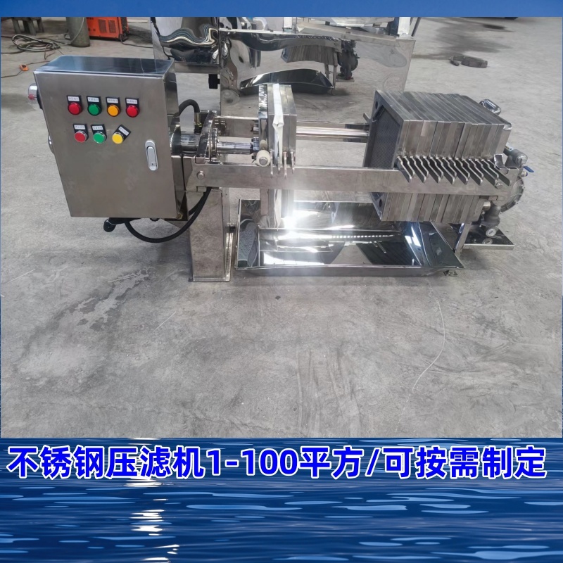 主要由滤板、滤框、压紧装置、集液槽及支架等组成。滤板和滤框采用 304、316 等优质不锈钢材料制造,滤板 / 滤框采用不同型号型材,网孔板裁切不同大小焊接而成,用户可根据不同产品更换不同滤材,如微孔滤膜、滤纸、滤布等。