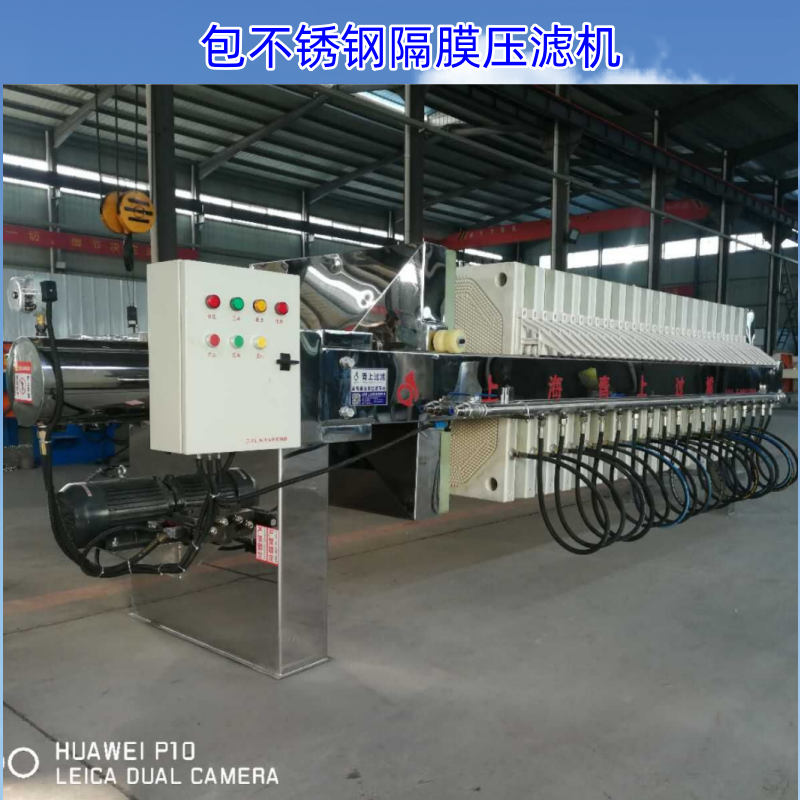 全包不锈钢隔膜压滤机生产厂家青上过滤公司是专为食品、制药、精细化工等卫生级、强腐蚀场景设计的高端固液分离设备,整机(含机架、滤板、管路)采用 304/316L 不锈钢包覆或全不锈钢制造,兼具隔膜压榨的高效脱水与不锈钢的卫生、耐腐蚀特性。